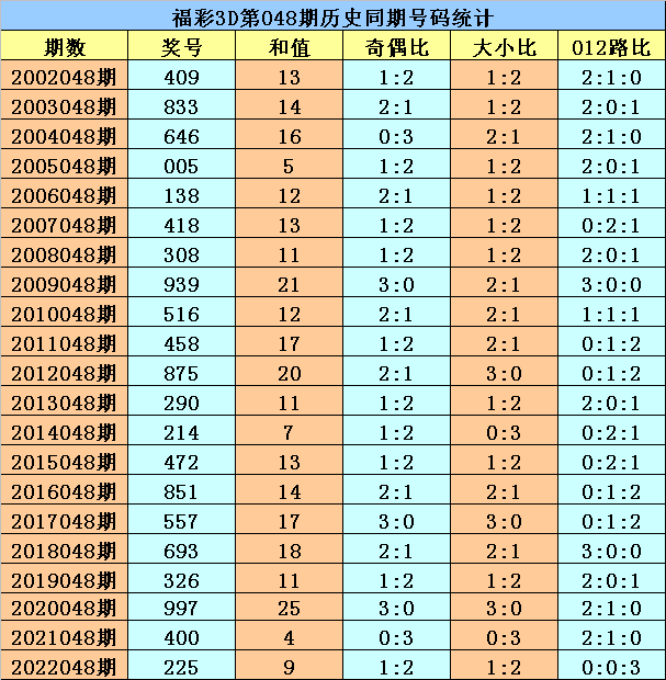 福彩3D第2023048期开奖日历:2023年2月27日皇冠官方入口,历史上第048期已开出了21次奖号,积年同时号码分散为:409、833、646、005、138、418、308、939、516、458、875、290、214、472、851、557、693、326、997、400、225。