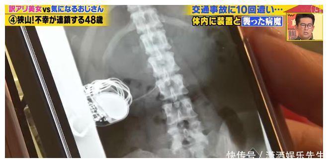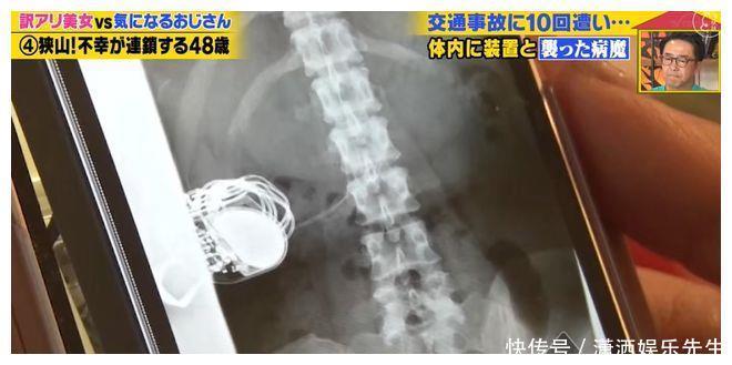 脊柱中埋了8个机器,然后用线一直贯串到腹部,刺激装配就埋在了这边。